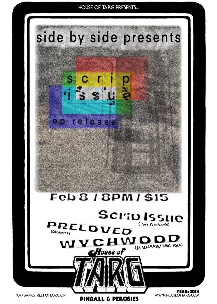 Targ has perogies & pinball, Scrip Issue will bring their shoegaze punk (spotify), Preloved will serve up beautiful homemade dreampop (bandcamp), and bring the blackgrass, of course.