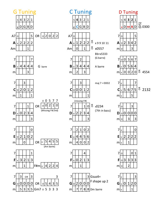 Again, 7th & minor chords only show changes from the major chords.