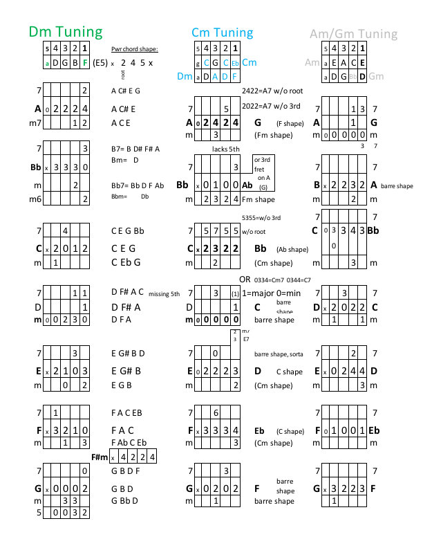 - extra info on what notes make up the chords and how to make barre chords