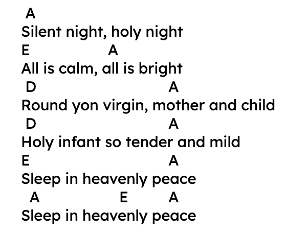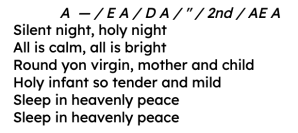 Here’s how you would normally write out the chords and words for “Silent Night”.