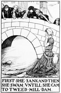 From the Scottish version, we’ve inserted the verse where the lady casts a spell on the sea (i.e. “the flood”) and the line about “Green grass grows over my head.”