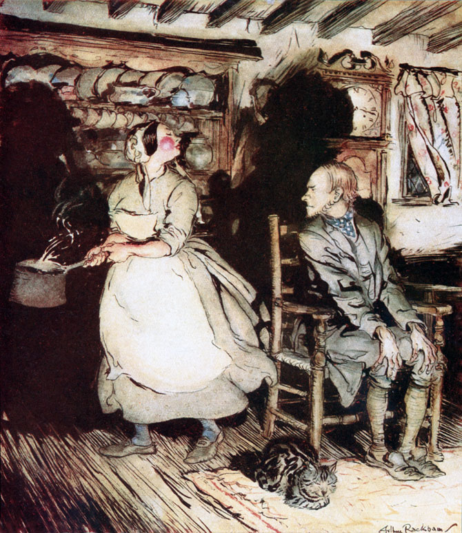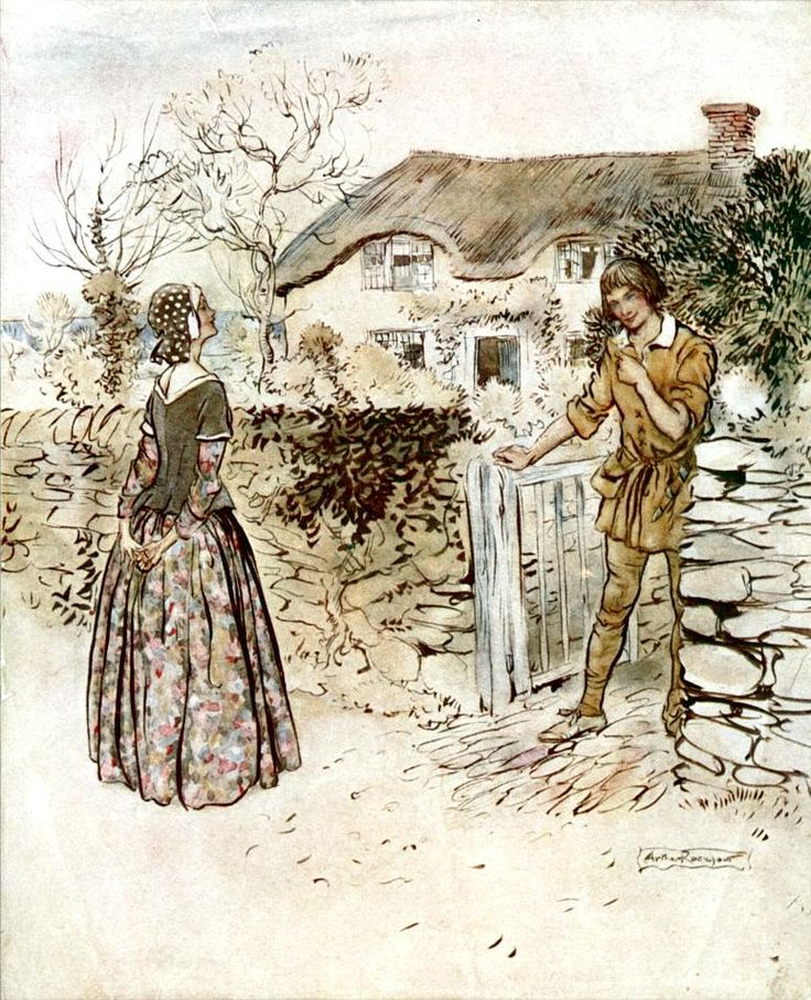 From the Scottish version, we’ve inserted the verse where the lady casts a spell on the sea (i.e. “the flood”) and the line about “Green grass grows over my head.”